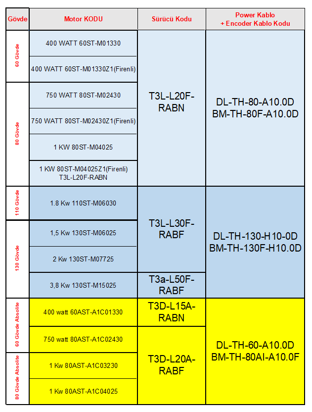 U/V/W uçları → Servo motor faz uçları.